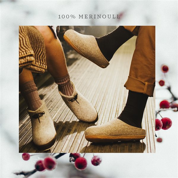 Grå tøfler i filt herre- den orginale Haustøffelen