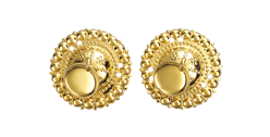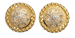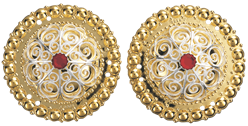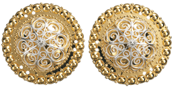 Borer i forgylt sølv med trådkantlauv. Desse har syhol slik at dei kan syast på bunaden. Vert leverte som par.