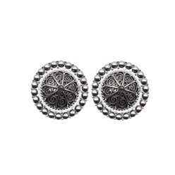 Borer i oksidert sølv med kruser. Desse har syhol og kan syast på bunaden. Vert leverte som par.
