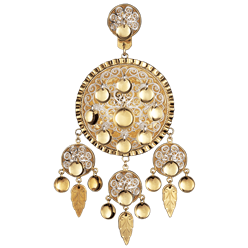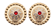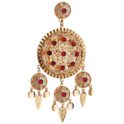 Borer i forgylt sølv med kvit filigran og raud stein i midten. Desse har øsken på baksida til montering på skinnlist. Vert leverte som par