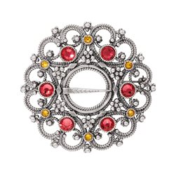 Denne vakre, feminine rosesølja er inspirert av en gammel rosesølje, og har en mengde nydelige detaljer: blomster av sølvkuler, “snippdemanter” rundt midten og lette, forgylte løv og heng.