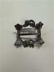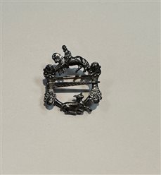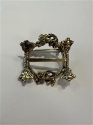 Hornringen er 33mm bred. Figursølje til Snipekufta, som finnes i både oksidert sølv, og messing. Her vist i messing. Museumskopi fra Telemark.