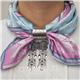 Ein skjerfring i kvitt sølv, laga for å halda silkeskjerfet til bunaden vakkert og trygt på plass. Det graverte mønsteret har same formspråk som anna bunadsølv og skapar eit gjennomført uttrykk.