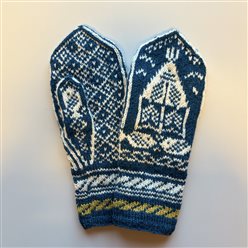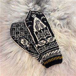 Votten er en damestørrelse strikket på strømpepinner 2,5 og 3.