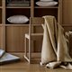 Designet er inspirert av bearbeidingen av naturlige materialer, og resulterer i et intrikat, men raffinert mønster med en teksturert overflate. Den tilsynelatende uregelmessige komposisjonen refererer til naturlige elementer og formidler en tydelig følelse av stillhet. En ensfarget ramme definerer pleddet med geometrisk balanse og tilfører symmetri til et ellers organisk design.