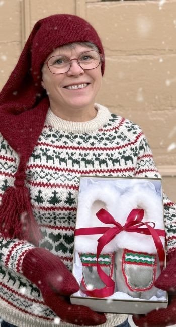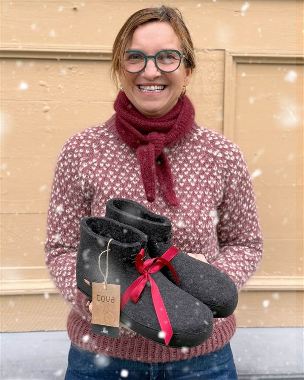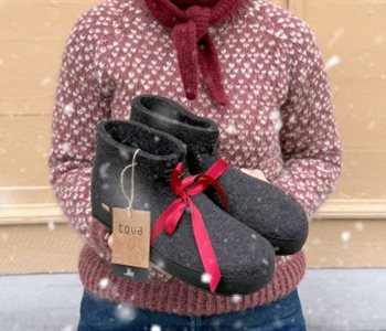 I tillegg har vi Ramfjordtøffelen, en selskinnstøffel fôret med ull, sydd i Ramfjorden, som er rett utfor Tromsø. Vi har også lokalt håndstrikkede votter i flere varianter, og vi har Norsk Flid sin tidløse Busserullkolleksjon. Hos oss finner du også finner lokalt håndlagde produkter innen keramikk og tre, fra forskjellige lokale håndtverkere.